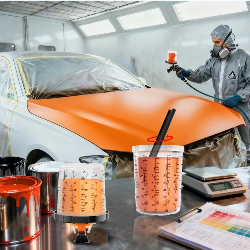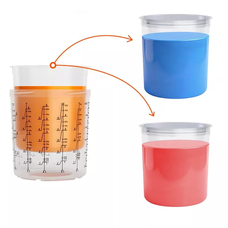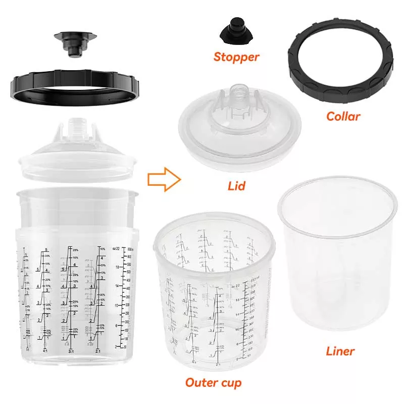 डिस्पोजेबल पेन्ट कप प्रणाली एक एकाईमा मिक्स, फिक्सिंग, फिक्पिंग, र भण्डारण प्रकार्यहरू संयोजन गर्नुहोस्। यो केवल सिफ-पेन्ट तयारी मात्र सरलीकृत गर्दछ तर क्याम्पिंग कप र कागजका फनेलहरूको लागत पनि बचत गर्दछ, तयारी समय बचत गर्न र स्प्रे दक्षता सुधार गर्न।