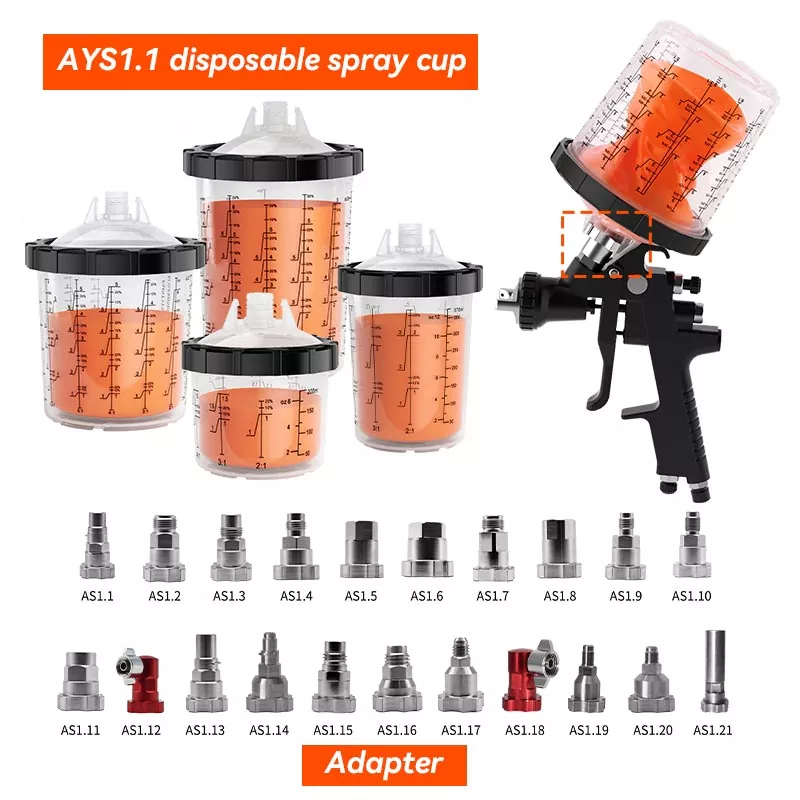Anys1.1 डिस्पोजेबल पेन्ट कप प्रणाली म्यानुअल स्प्रेइटिंग अनुभव उचाल्छ, मिक्स गर्दै र सही खुशीको स्प्रे गरेर पेन्ट सफा गर्दै