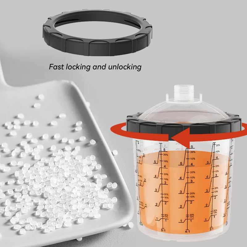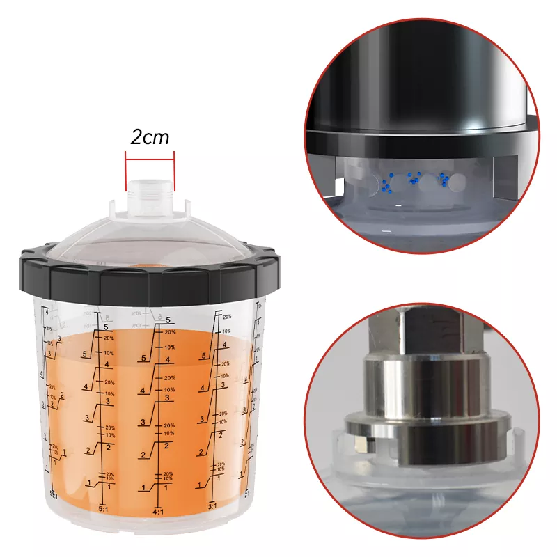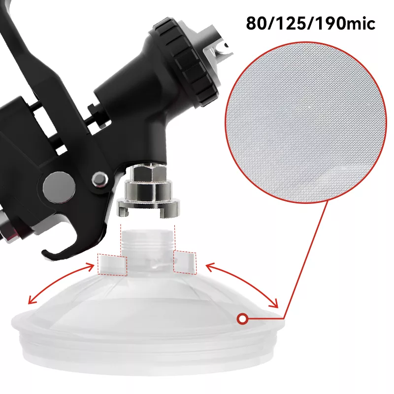 650ML स्पीडी पेन्ट प्रणाली 2.0 एक नयाँ प्रकारको डिस्पोजेबल स्प्रे पेन्ट कप प्रणाली हो। एउटा कार्टनमा [१ बाहिरी कप +१ कलर +५० लाइनर +५० ढक्कन +२० स्टपर्स] समावेश हुन्छ, जसले एउटै एप्लिकेसनमा रंगका धेरै रंगहरूलाई समर्थन गर्दछ। रंगको विभिन्न कण आकारहरूको लागि, फिल्टर नेट 80, 125, र 190 माइक्रोमिटरमा उपलब्ध छन्, तपाईंको उपयुक्त फिल्टर छनोट गर्न अनुमति दिन्छ। डिस्पोजेबल स्प्रे पेन्ट कप प्रणालीले पेन्ट मिक्सिङ र भण्डारण एकाइको रूपमा पनि काम गर्न सक्छ, त्यसैले अब कागज फनेल र मिक्सिङ कपहरू प्रयोग गर्न आवश्यक छैन, एकमा चार प्रकार्यहरू प्राप्त गर्दै: फिल्टरिङ, मिक्सिङ, स्प्रे गर्ने, र पेन्टको लागि भण्डारण। यही कारणले चित्रकला उत्साहीहरूले यो उत्पादनलाई धेरै माया गर्छन्।
