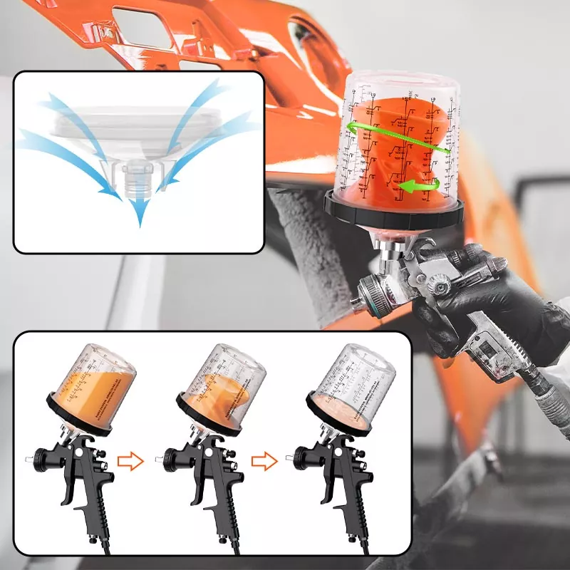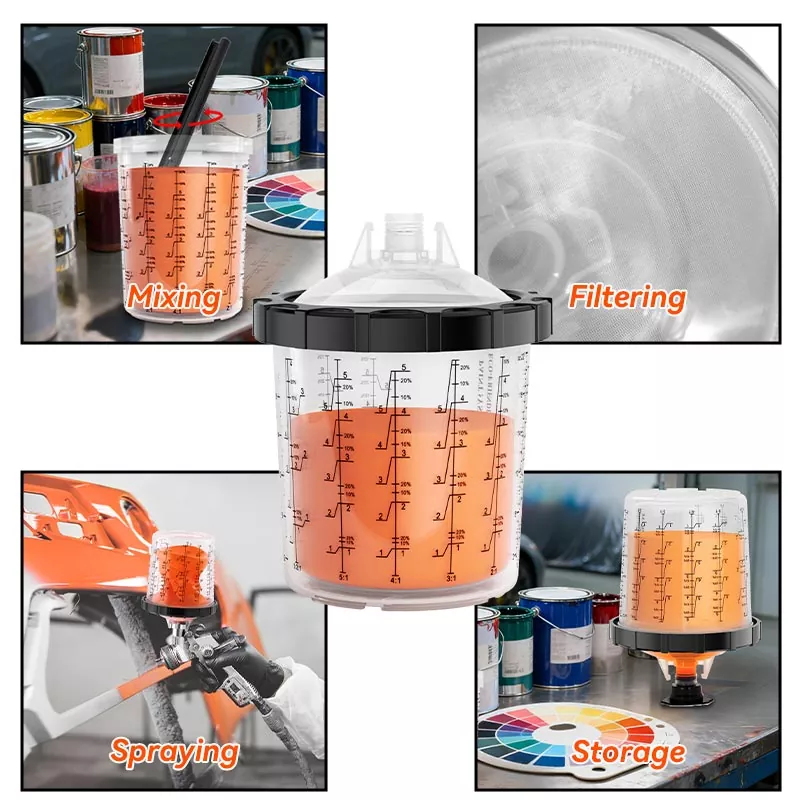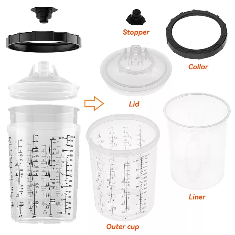 800ML डिस्पोजेबल पेन्ट कप प्रणाली 1.0 ले पेन्ट मिक्सिङ र स्प्रे गर्न सजिलो र सुविधाजनक बनाउँछ, साथै पेन्ट क्लिनअप र भण्डारणलाई पनि सरल बनाउँछ। उत्पादनहरू अलग कन्टेनरहरूमा स्थानान्तरण नगर्नुहोस् - केवल प्रयोग गर्नुहोस्डिस्पोजेबल भित्री कपहरूविभिन्न पेन्ट रङहरू मिलाउन, स्प्रे गर्न र अलग-अलग भण्डारण गर्न, पेन्ट स्प्लेटर हटाउन। AYSPAT डिस्पोजेबल स्प्रे कप समाधान बारम्बार रंग परिवर्तन, सफाई समय र विलायक प्रयोग कम गर्न डिजाइन गरिएको छ।